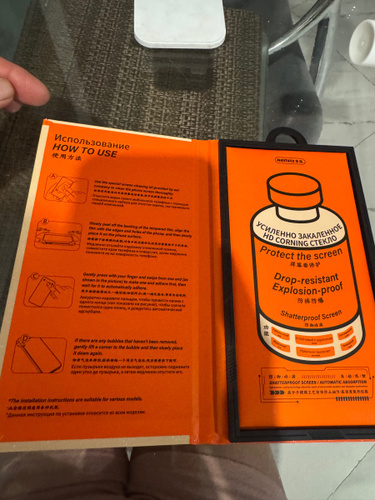 На мой взгляд, одно из лучших стекол для iPhone. В комплекте салфетки для натирки, наклейки для удобства приклеивания/удаления пыли. Само стекло плотное, после установки не вызывает дискомфорта при использовании телефона.