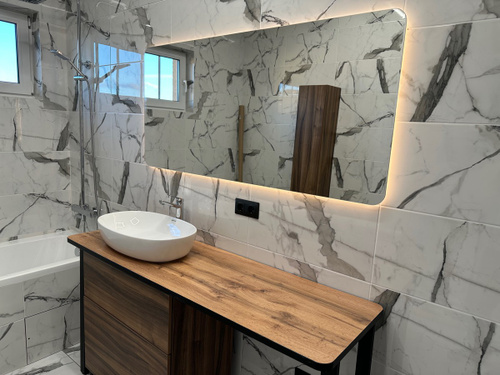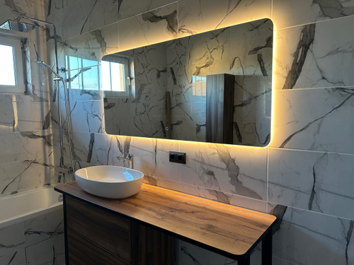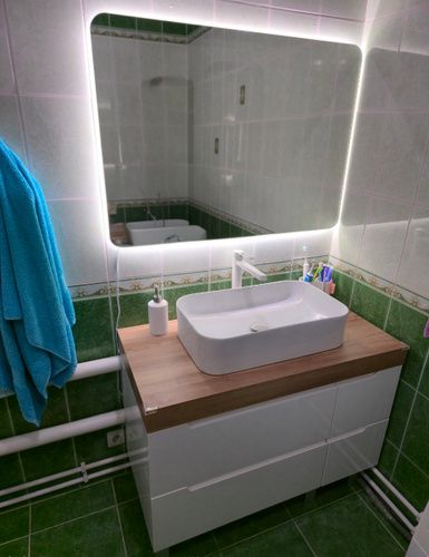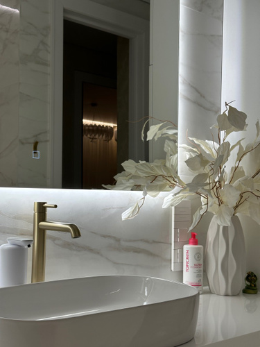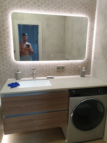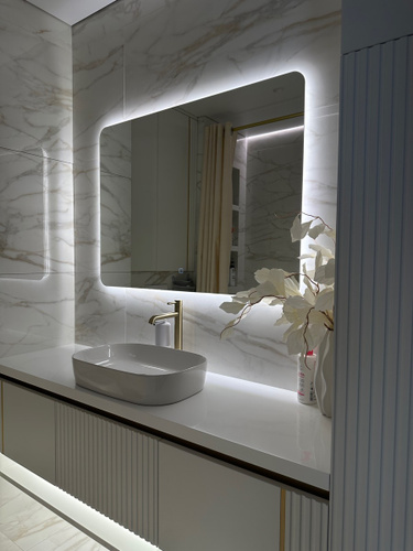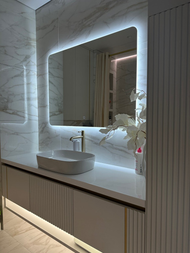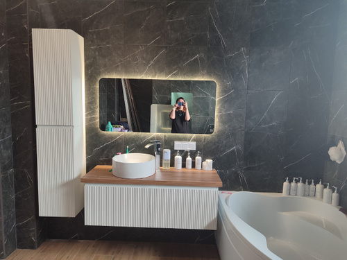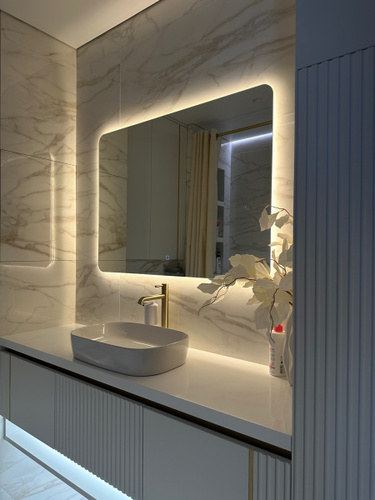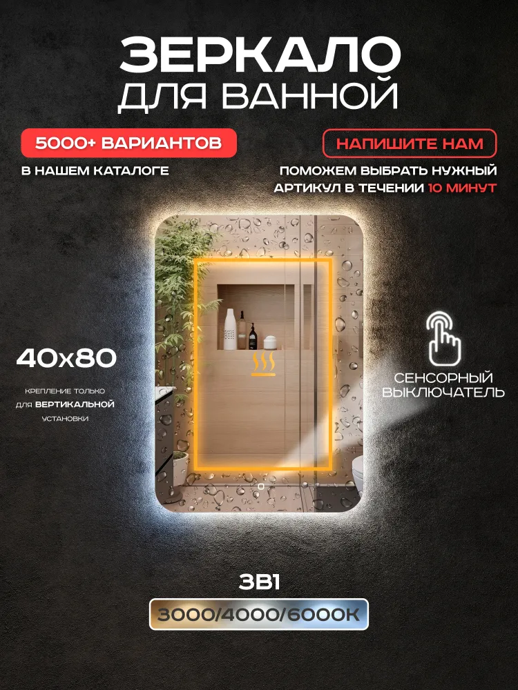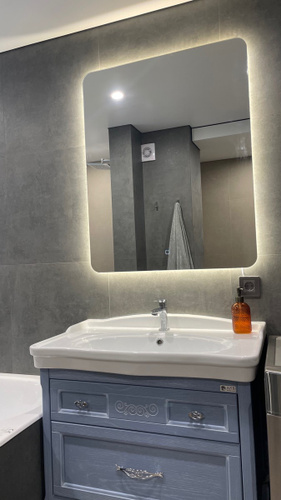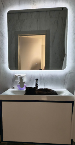 Зеркало с подогревом, сенсорный выключатель. Сетевой шнур, фурнитура, инструкция в комплекте.