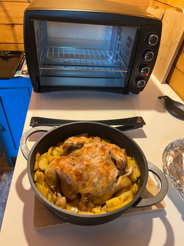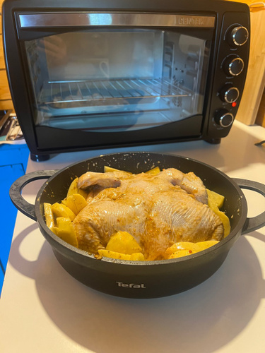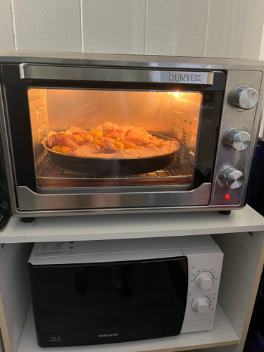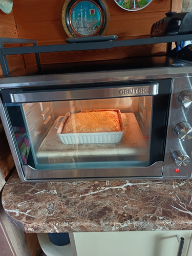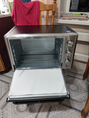Устройство оснащено четырьмя режимами нагрева, включая верхний/нижний обогрев, гриль и конвекцию, что позволяет готовить разнообразную еду: от хрустящих запеканок до равномерно прожаренных куриных бедрышек. Таймер с автоматическим отключением обеспечивает контроль времени, а быстрый нагрев до высоких температур сокращает время приготовления.