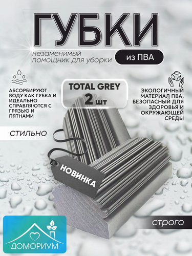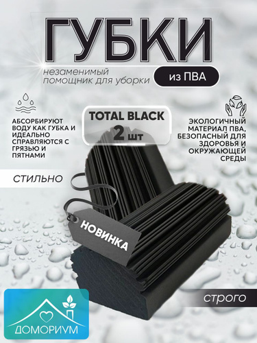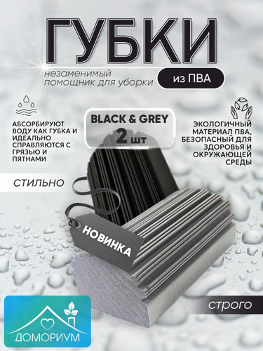 Губки для уборки и мытья универсальные, хозяйственные, для посуды, ванны, автомобиля, стекол, зеркал, ПВА (PVA), 2 шт. серая, черная
