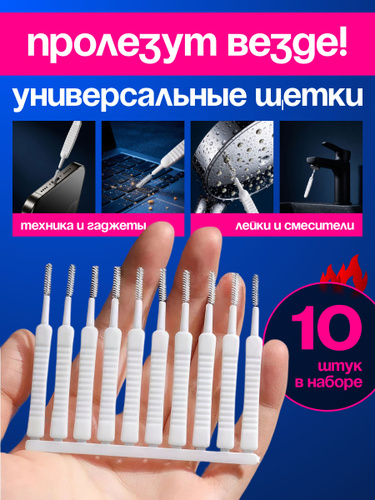 Ёршик для чистки лейки душа 10 шт.Универсальная щётка для чистки гаджетов и труднодоступных мест