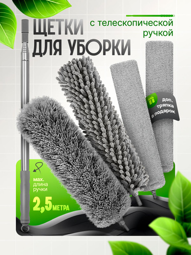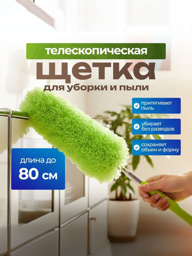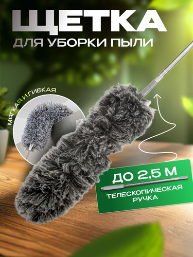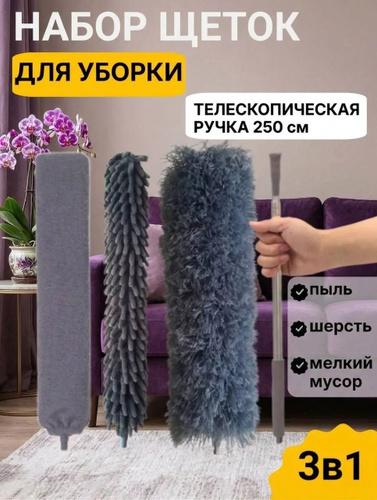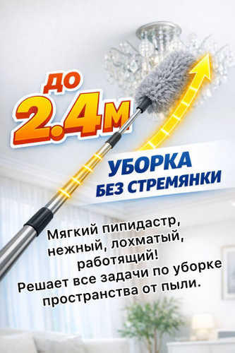 Пипидастр для пыли с телескопической ручкой 2.5 метра антистатический для удаления пыли и уборки труднодоступных мест, щетка для уборки
