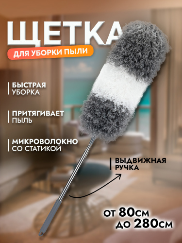 Пипидастр для пыли с телескопической ручкой 80-280 см. Щетка для уборки антистатическая из микрофибры, гибкая насадка 35 см, метелка для пыли