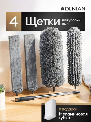 Пипидастр Дениан антистатическая сметка для уборки пыли, гибкая с длинной телескопической ручкой