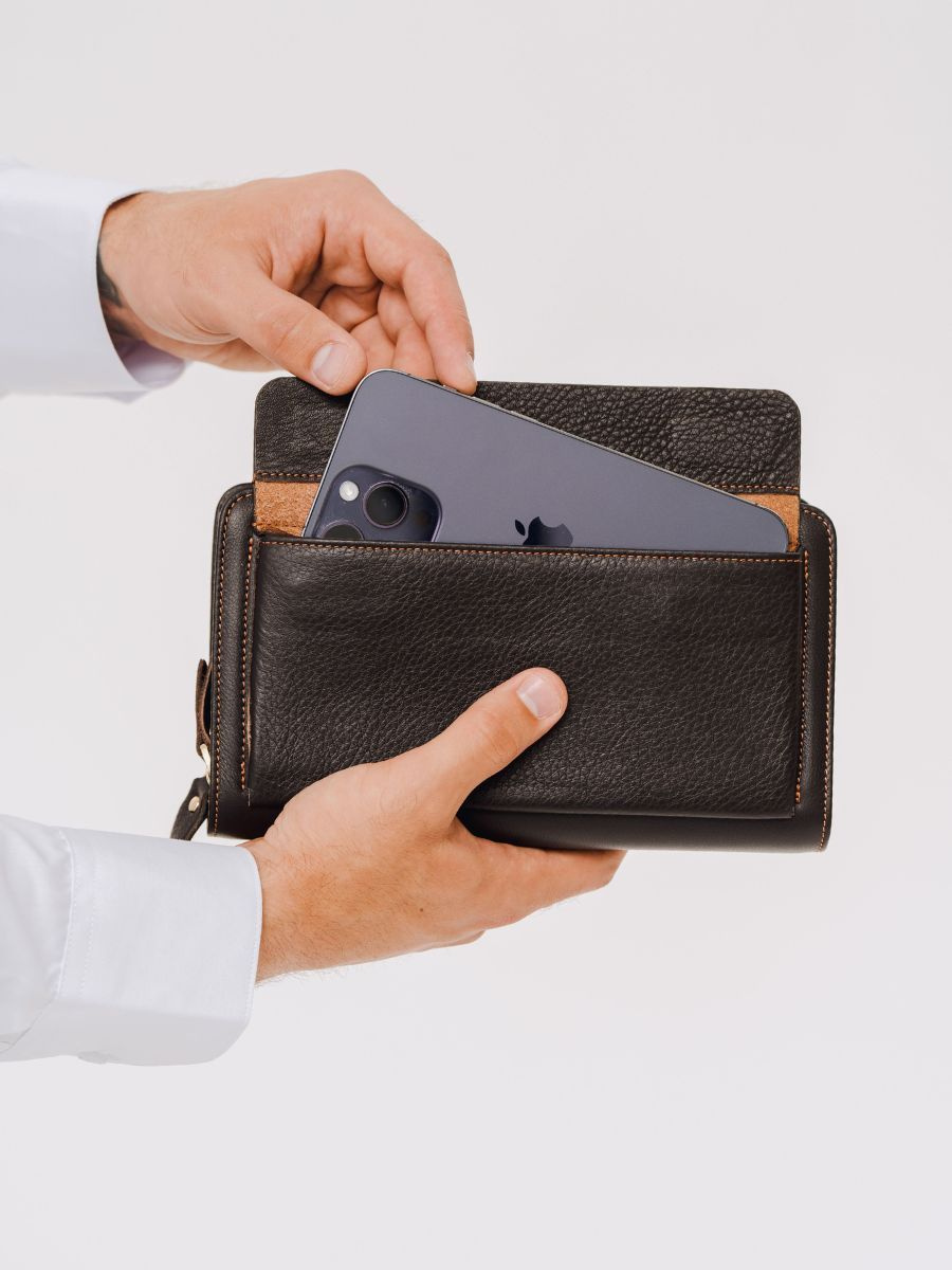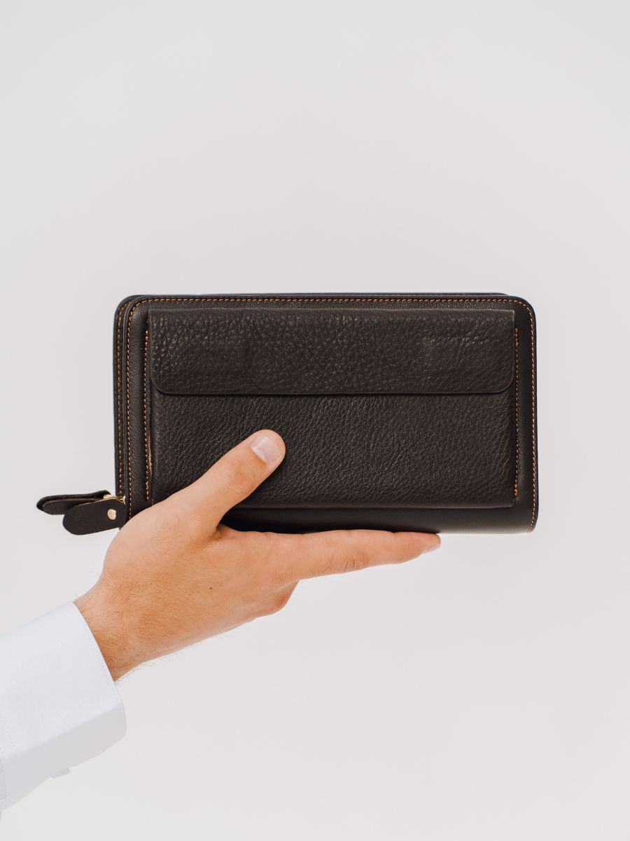 Кошелек мужской из натуральной кожи - 1 шт, ручка-хлястик-1шт